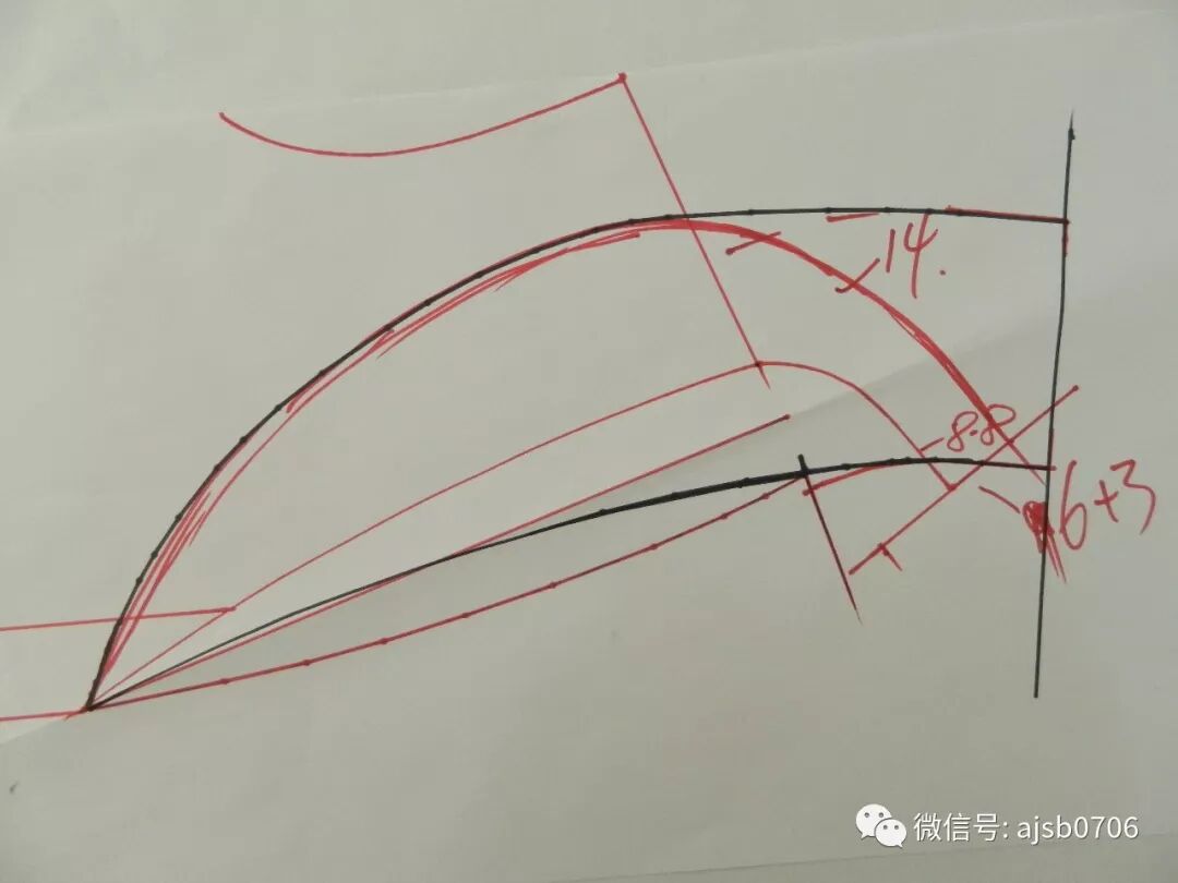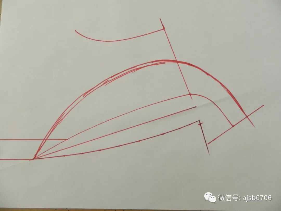 这是一款香蕉翻领,本款的特点是,大身在原型领口的基础上宽度加大的很小,但领深加大的很多,这款领型在春秋季外套中应用的很广泛。