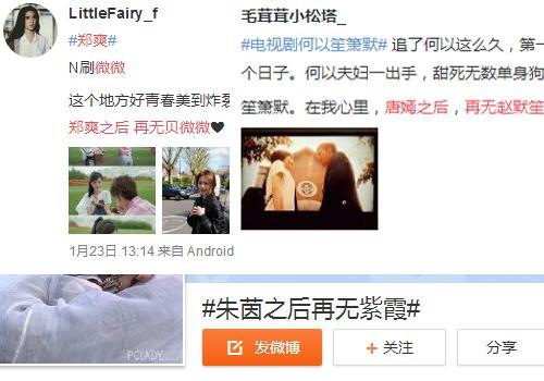 那么,问题是谁踩?此前,也有一些粉丝刷过类似的句式,比如“郑爽之后再无贝微微”、“唐嫣之后再无赵默笙”、“朱茵之后再无紫霞”,但影响力十分小。