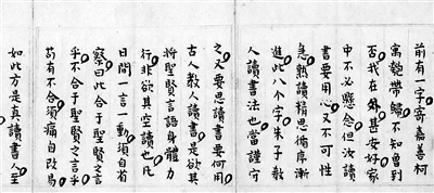 展览中展出了陆陇其写给儿子的一封家书,这是他到北京后写的第二封家书,无法在儿子身边进行指导,他只能通过家书叮咛:“我在外甚安好,家中不必悬念,但汝读书要用心,又不可性急。熟读精思、循序渐进,此八个字,朱子教人读书法也,当谨守之”。陆陇其又诠释了什么是真读书人:“古人教人读书,是欲其将圣贤言语身体力行,非欲其空读也。凡日间一言一动,须自省察,曰此合于圣贤之言乎,不合于圣贤之言乎。苟有不合,须痛自改易,如此方是真读书人。”