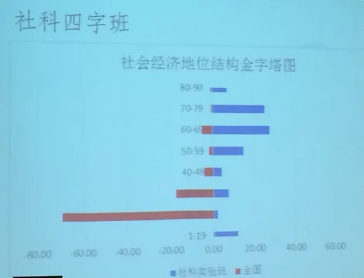 简单来说,这张图是清华学生父母的社会经济地位的构成和全国的构成的对比,可以明显看出清华学生里社会经济地位高的家庭占比更高,社会经济地位低的家庭占比较低。