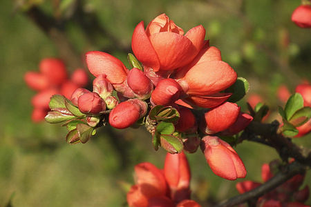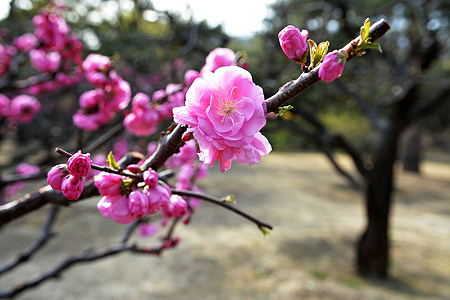 具多数短小枝;花单瓣至重瓣,紫红色,