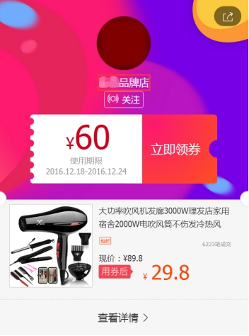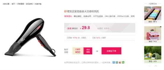 一套大功率吹风机,销售价是89.8元,点击领取优惠券后页面是这样的: