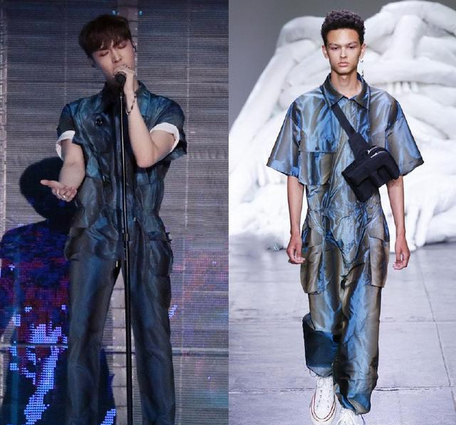 相比洗旧色的牛仔连体裤,这套特殊材质的连体裤穿出来的效果就有点与众不同,一不小心驾驭不住还会变的很low的感觉,带着土气,不过在张艺兴的身上却显得出奇的帅气减龄,比起模特,艺兴年轻还带着型男帅气的感觉,这种帅真不是一般人能拥有。