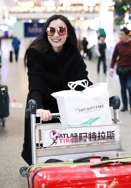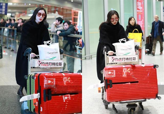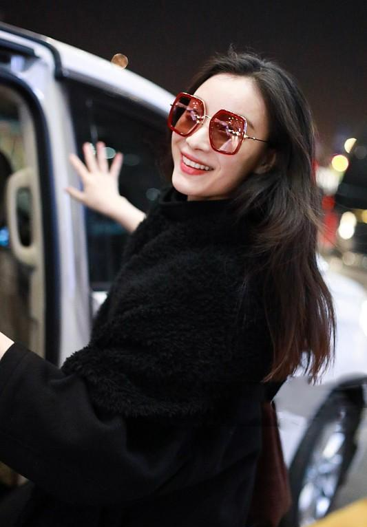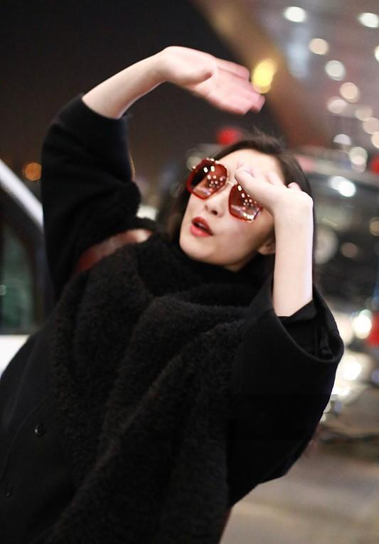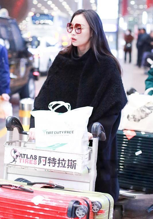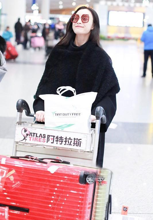 完美的侧颜杀加上这一身黑系穿显得特别的有气场,尤其是这苍蝇版型的墨镜,瞬间气场大开,推着推车,网友也是调侃,完全就像一个女企业家考察回国的状态,成熟有型的姿态充满了女人味,特别是那停滞的状态太好看了。