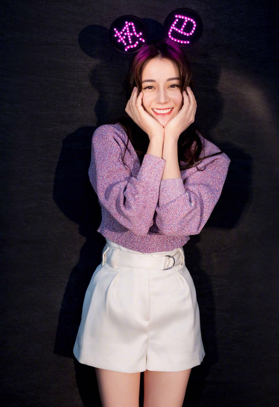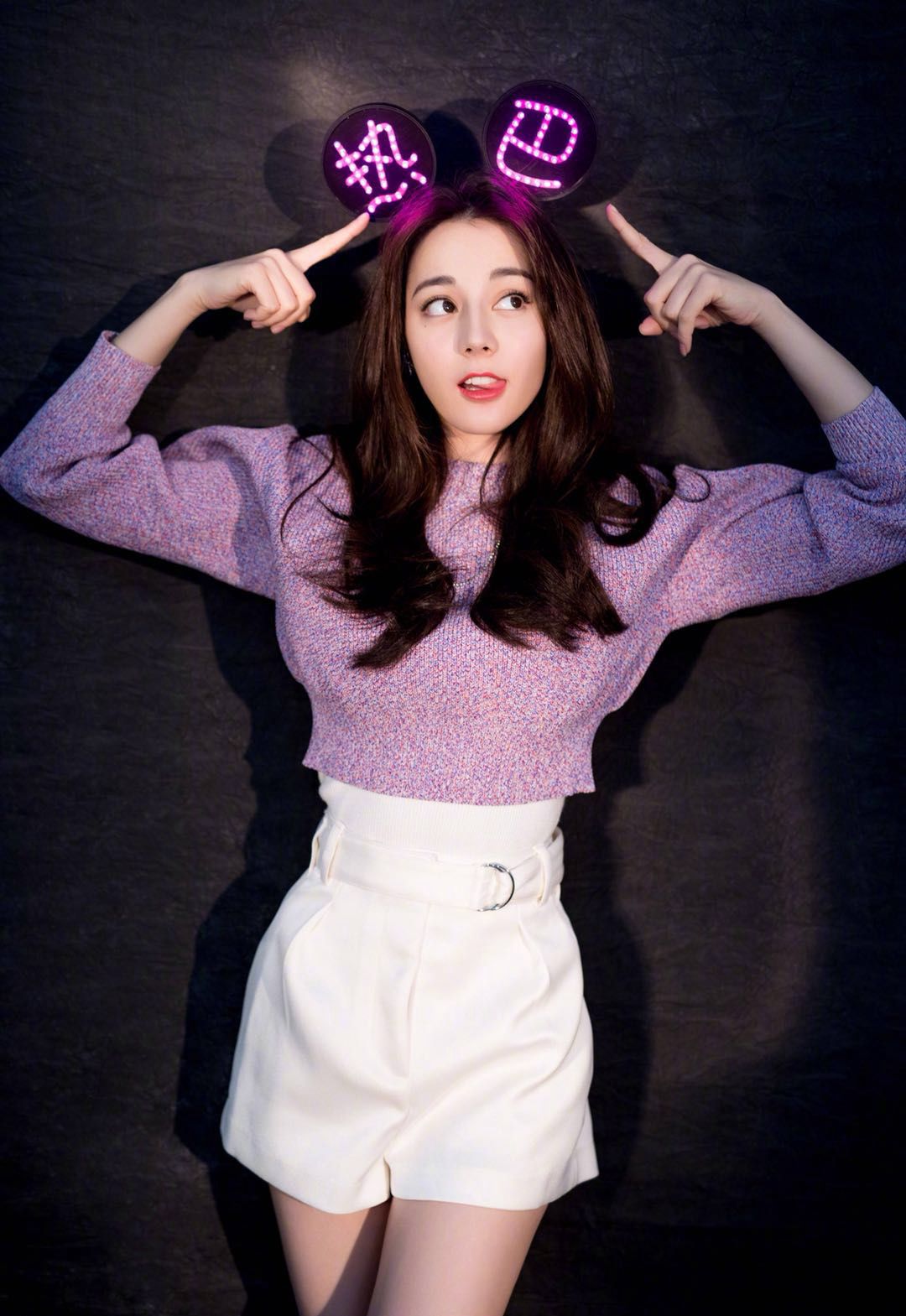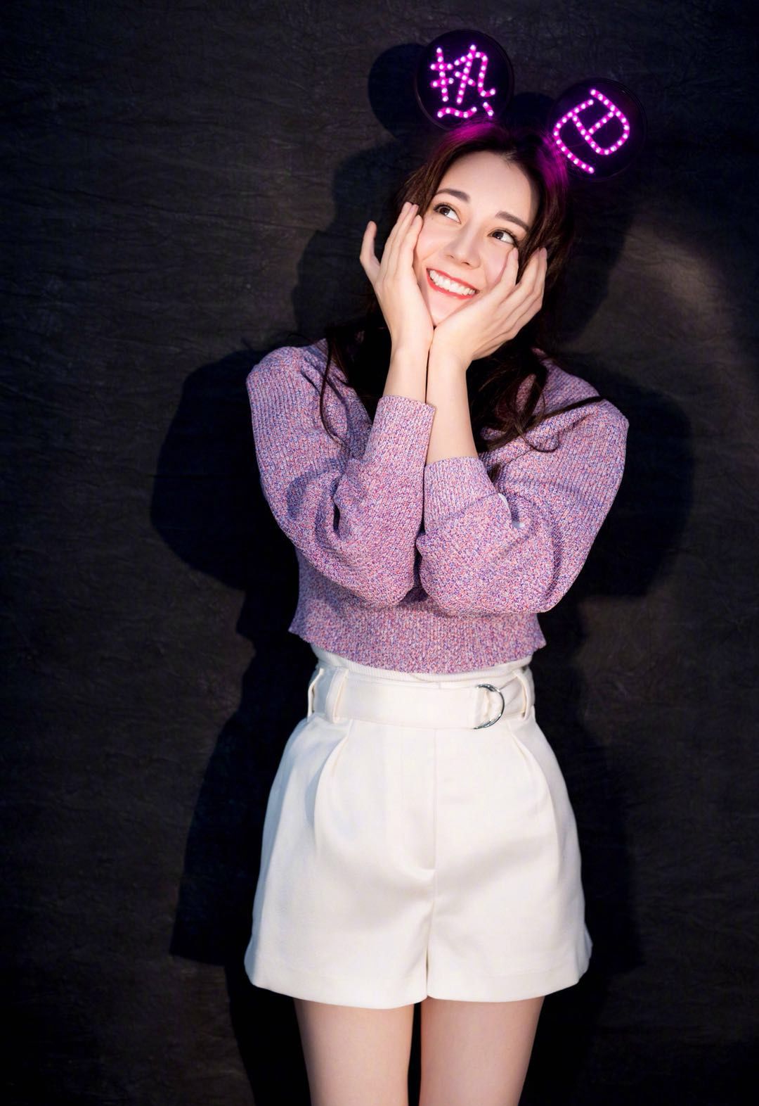 上身是这款香芋紫套头毛衣,下身搭配白色的短裤,秀出自己的麻杆细腿。毛衣搭配短裤是一种季节混搭,很多身材很好的明星都这样穿。迪丽热巴这一身在选款和选色上都是很不错的,看上去很时尚。