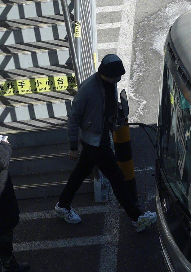 上衣是一件深蓝色的打底衫,外面搭配一件浅灰色的短款夹克衫。他并没有再选择长款的服饰了,反而看上去瘦了不少呢。下身搭配黑色休闲裤,依旧还是经典百搭款。黑色休闲裤是不挑人的,与任何服饰都能一起搭。