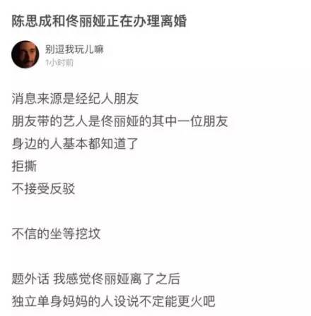 即使目前无法证实消息真伪,但从网友一边倒支持离婚中可以看出,现在早已不是那个“宁拆一座庙,不拆一桩婚”的时代。大家都以“不分难道留着过年”的态度,希望佟丽娅能拥有更好的人生。