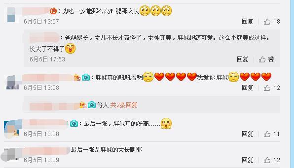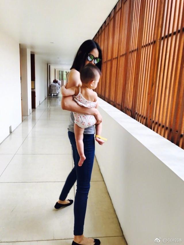 但最吸引人的是张梓琳发的女儿的这张单人照,我不管她是垫了脚还是拍照角度找得好,这腿也太长了吧!?吓得我赶紧去搜了一下胖妹的年龄,没错,人家刚满一岁。想想我一岁的时候,可能只到她的肩膀吧···