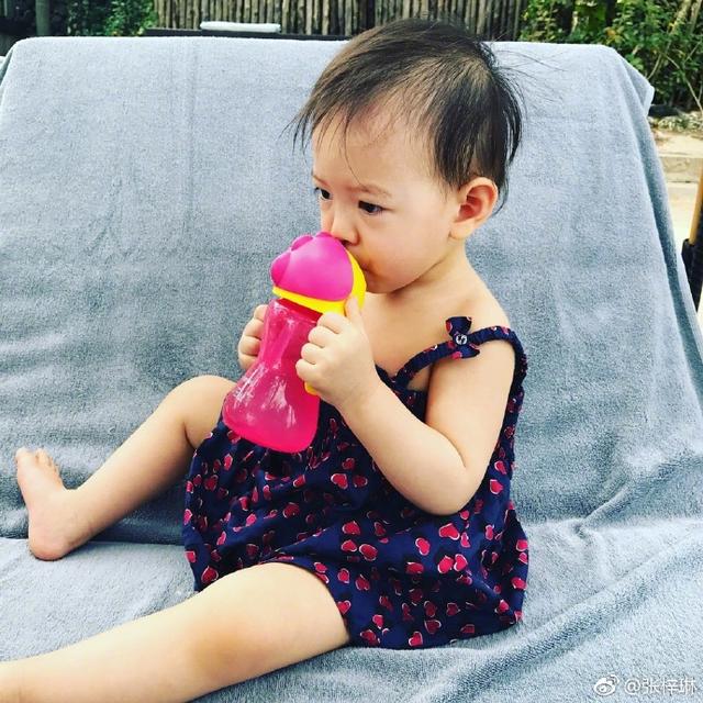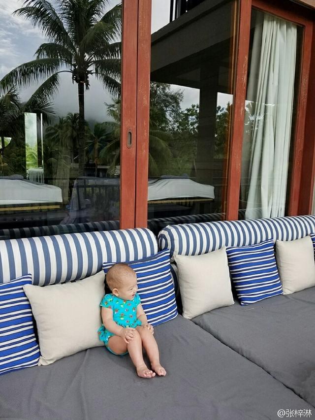 之前胖妹半岁的时候张梓琳也给她拍了一组比基尼写真,当时看宝宝也还好,暂时还看不出什么大长腿的趋势。