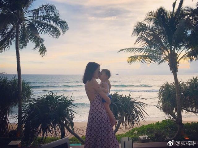 要说晒娃秀幸福,张梓琳是相当拿手的,模特妈妈抱着女儿在海边散步,这种照片看一百张都看不够!