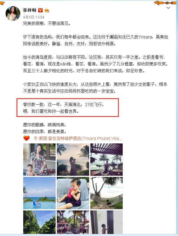 感觉张梓琳的生活实在是在舒服了,一言不合就带着老公和女儿出去旅游度假,这次一家三口又去了泰国。作为妈妈的张梓琳真是细心,她还专门给胖妹作了记录,一年的时间小朋友居然飞了27次,天南海北世界各地都走了一小圈。