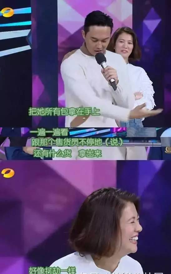 曾经张智霖曾在快本上绘声绘色模仿起老婆在名牌店里买包包的样子。