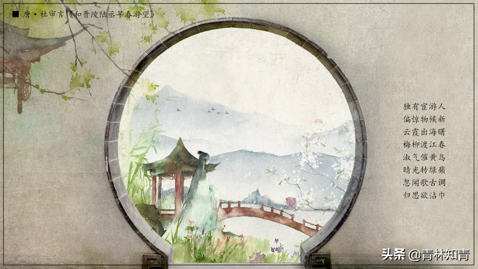 旭日东升,海天相连,四处春柳吐芽,黄莺啼鸣,早春的江南,浮萍新绿,“乱花渐欲迷人眼,浅草才能没马蹄”,然而,“古调虽自爱,今人多不弹”,其孤芳自赏,一骑绝尘,又化作乡愁涌上了心来。