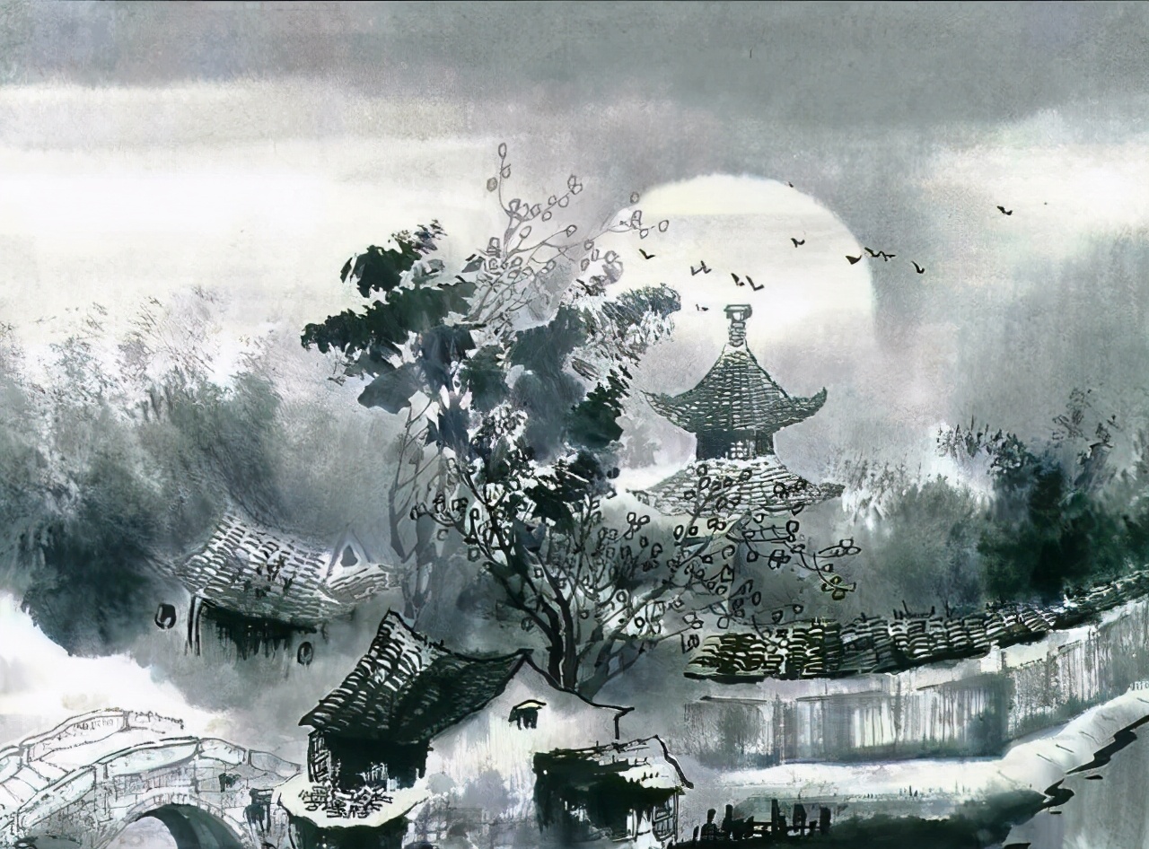 云水茫茫,家在何方,感风流犹存,叹风光不在,渡头落日,鸥惊残阳,杯酒一盏,寂寞凄凉,读着他的这首《八归》,如欣赏着一幅清疏淡远的《秋江俯瞰图》,我们是否能从那寒江秋雨中,看见一个在渔市樵村中,孤独踌躇,步履蹒跚的身影。