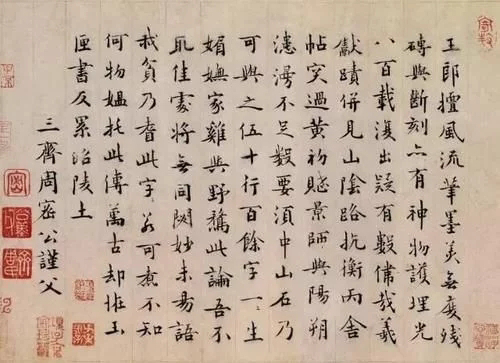 作为由宋入元后的文人,大部如赵孟頫一样,被迫与元人合作,而如文天祥及谢枋得等坚持反抗之人,为数是极少的,代价也是很沉重的,至于如周密或蒋捷这样宋亡不仕之人,也是不多,但结局大相径庭,如蒋捷便是衣食无着,讨口剩饭都要千恩万谢,相比之下,这周密是幸运了许多。