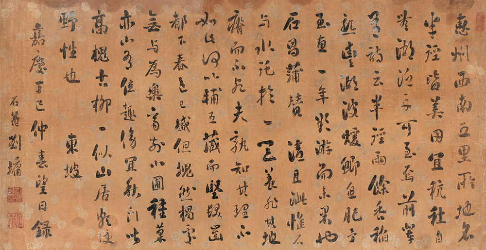 刘墉的学识一流,经史百家无所不通,尤以书法最为人称道,他“少习香光,壮迁坡老”,在清代书界也是声名赫赫之人,时有“浓墨宰相”之称。