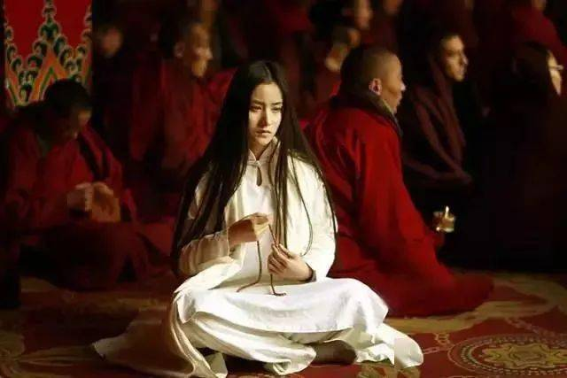 据说仓央嘉措在被定为转世灵童前,有一位青梅竹马的女伴,相爱至深,但是,“佛门一入深如海,从此萧娘是路人”,自从他成为活佛后,二人当然是不可能在一起了,于是,女方父母立即将这小妹妹远嫁他人,独留下伤心欲绝的仓央嘉措在昏暗的酥油灯下悲伤。