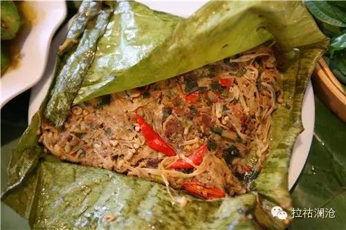 傣崩包烧鸡,又叫傣崩叫花鸡,也是傣崩宴里值得一尝的佳肴,做法是汉人的,配方和佐料确实傣崩人独有的,这样“汉傣合并”的做法,也造就了一种特殊的美味。