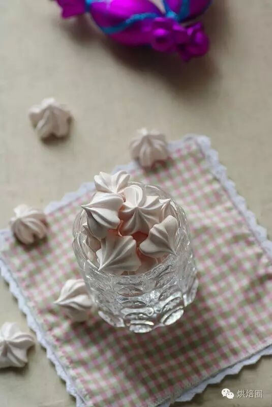 过程和瑞士蛋白霜饼做法一样,略。唯一要注意的是,打发好蛋白霜后,最后加入果粉或色素,低速搅拌均匀。