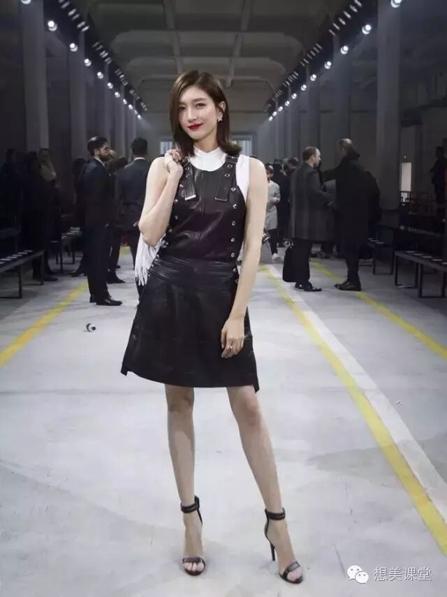 ▲想要穿出“白富美”,你还需要一件披在身上的机车皮衣,无论是参加活动还是约会逛街,皮衣是最百搭的出街利器。剧中江疏影有不少镜头都是小皮衣 连衣裙的造型,强势又不失女人味。