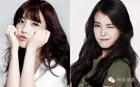 标准的心形脸,她们明显的两侧太阳穴处鼓起的骨骼,适合用发量少而且层次分明的刘海来软化两边突出的骨骼。