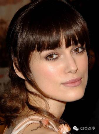 和方形脸用弧形线条软化是一个道理,圆脸要反其道而行之,要用平直的线条来中和。清晰的横竖线条能够让脸型看上去更完美。刘海可以在眉毛以上会更好。