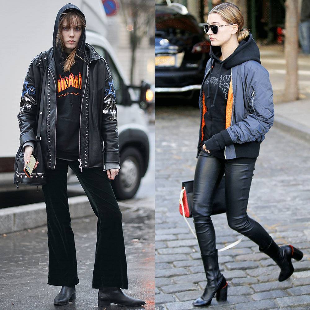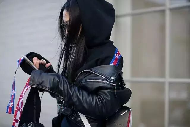 一件本来很酷的黑色大卫衣,扎进皮质的小短裙里后,时髦度蹭蹭蹭的up了好几个度,我就喜欢这样的女生~