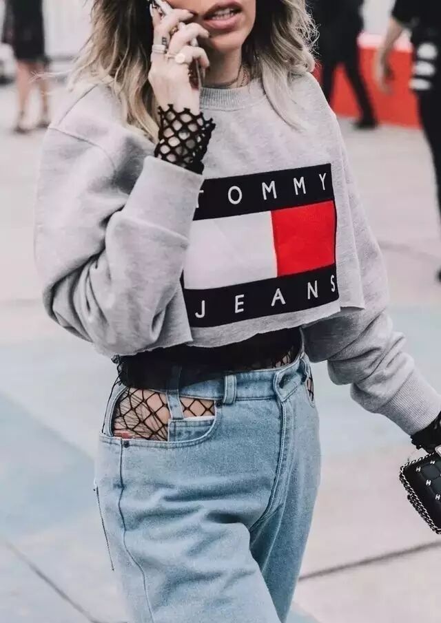 没有短款卫衣,你可以将你的正常版卫衣折叠起来,搭配上现在流行的网格元素,超级好看。