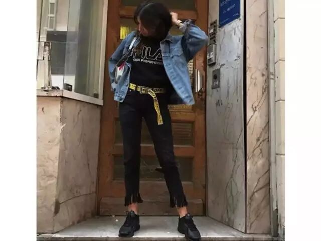 Vetements大家都熟悉,也是它把长袖子卫衣、拼接牛仔裤、火机高跟鞋等神奇元素带得大火。这件出现频率超高的绿色卫衣,据说是Champion在不知情的情况下"被合作"的。