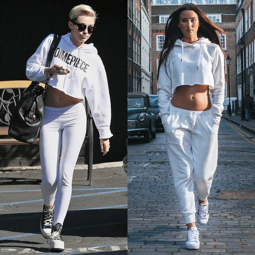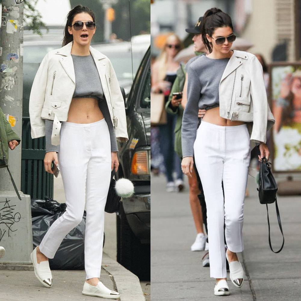 Kendall这件短卫衣设计比较取巧,直接做了个松紧收腰,前空翻100下估计都不会走光,难怪她可以这么自信地不好好穿皮衣,大秀小蛮腰。