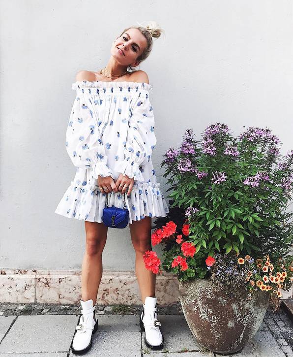 加上田园十足的草编包更是充满了清新活力