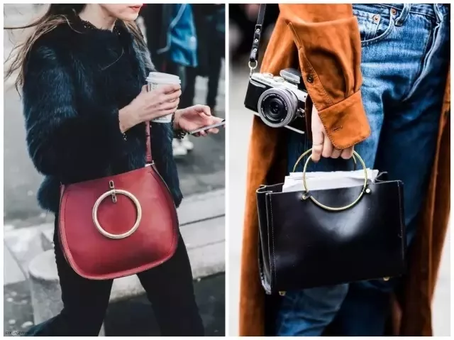 现在金属圆环元素愈演愈烈,很多品牌都出了各种圆环手拎包,一看就是为了拗造型而生的包款,而且金属柄什么造型都可以搭。