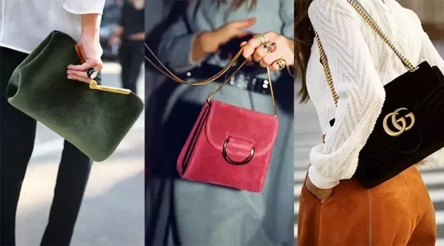 丝绒的质感会给人带来一种温暖感,就好比夏天很适合背给人清凉感的草编包,秋冬就很适合来一个丝绒包了。