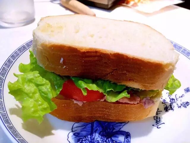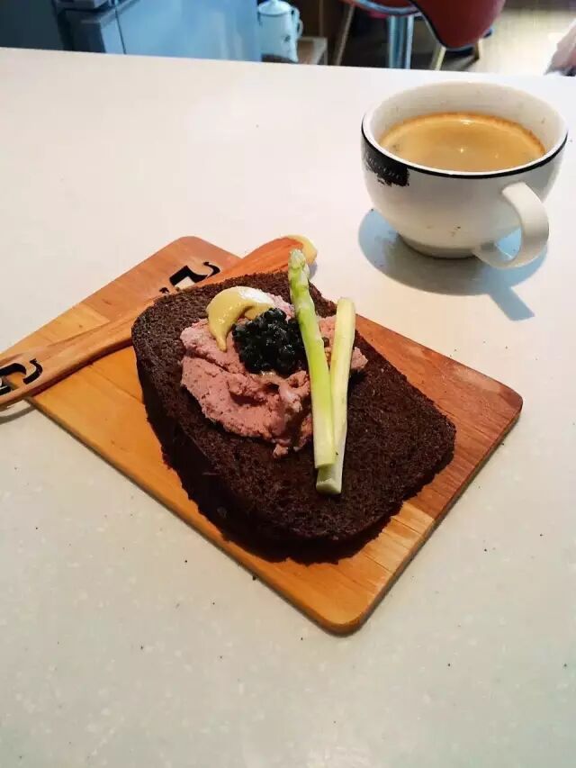 做法:面包两片,酸黄瓜、番茄切片,芦笋洗净去根和皮,新鲜甜菜叶切碎,依次铺放到一片面包上,然后挖一大勺鹅肝酱(好吃好吃好吃)和一点芥末酱在另一片面包上涂抹均匀。扣在一起开吃。