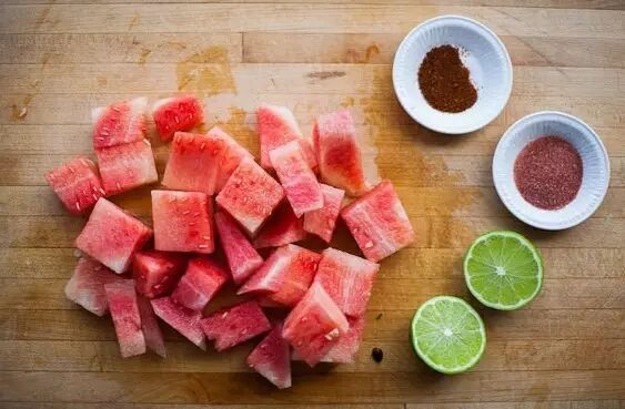 西瓜蘸辣椒粉和盐味道独特,辣椒粉不是特别辣,微咸。据试过的人说,西瓜滋味变得很丰富,味道更加清甜滋润。
