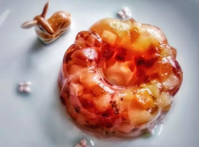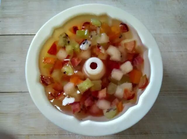 第六步:在室温下五彩水果冻就会自然凝固,只需放入冰箱冷藏两小时即可食用。