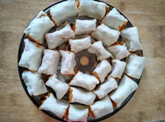 第十一步、蒸好菜卷,外皮薄如纸,我发朋友圈时还有朋友以为这个是肠粉。