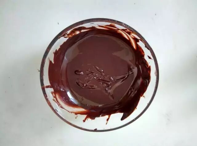 第六步、将70克黑巧克力隔温水或者选择微博炉融化成液态,我家没有微波炉就采用了隔水加热的方法。