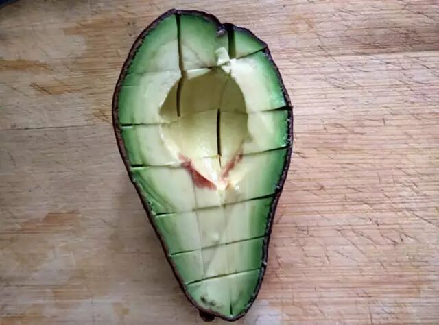第五步、蓝莓洗净、提子洗净后一切4瓣,牛油果切成小粒,蒸熟的紫薯切成和牛油果大小近似的小丁。