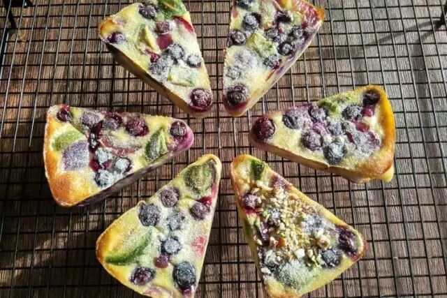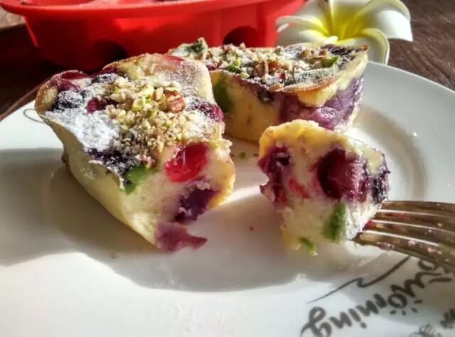 克拉芙缇(clafoutis)其实是一种历史悠久的传统法式甜点,其表面覆盖着一层新鲜水果,介于布丁和煎饼之间,最常见添加的水果是樱桃。 口感有点像蛋糕,味道又有些像布丁,如果用了其他水果就不能被叫做克拉芙缇了,但是冬季并不是樱桃的季节,所以我选择了蓝莓替换,并且加入了家中还有的其他食材,同样含有抗氧化物质花青素的紫薯、提子、以及含有维生素E和多不饱和脂肪酸的牛油果,这款甜点没有使用含有饱和脂肪较高的动物性淡奶油,而是采用了牛奶,既能享受到浓浓的奶香,又不担心饱和脂肪摄入过量,我在面粉中加入了玉米面和黄豆面,也可以起到蛋白质互补的租用。