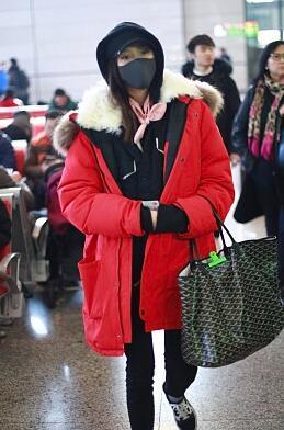 今日关晓彤现身机场,关晓彤身穿红色羽绒服搭配粉色丝巾现身高铁站,帽子口罩全副武装包裹严实,挎大包造型醉人。