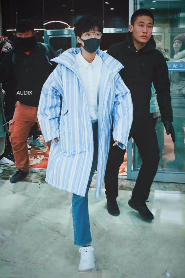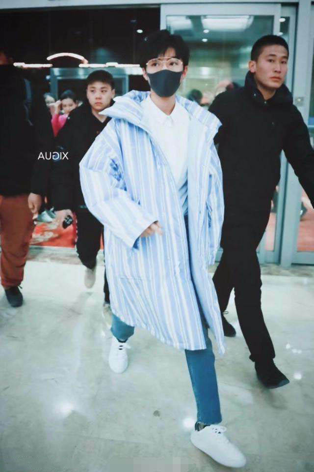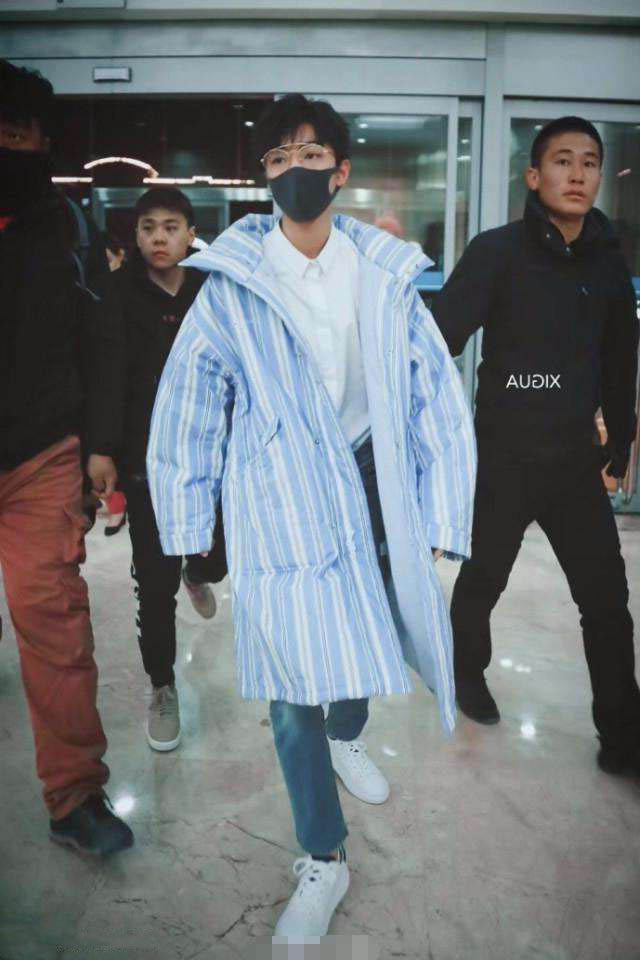 王俊凯现身机场的街拍照片,整个人看下来这样确实很有气范呢!黑色口罩家脸色长款棉服,搭配蓝色牛仔裤再加上简约的小白鞋,很好看。