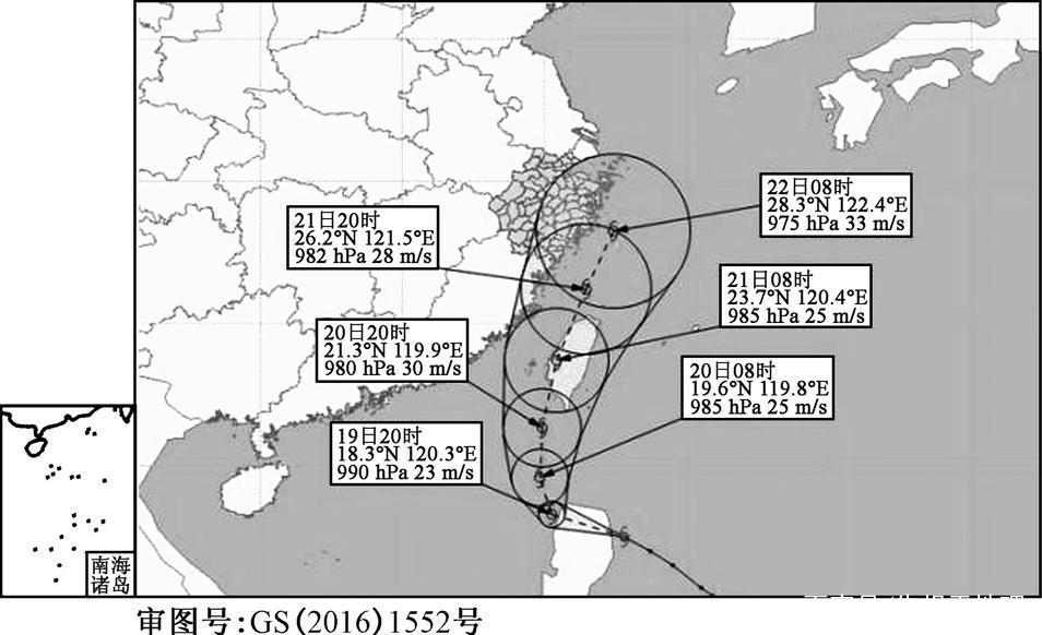 3S技术的发展为自然灾害的监测、管理、分析、救援决策提供了新的方法和手段,极大地减少了自然灾害带来的国民经济损失。下图为某次台风路径预测图。读图,回答4~5题。