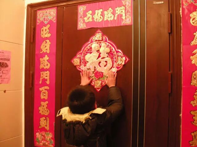 大门上还会贴个“福”寓意“添福”