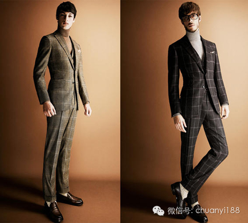 游走于复古及老气时尚边界的“毛衣+西装”,时尚金童Tom Ford运用三件式格纹西装配上70年代感的高领毛衣,下搭粗织厚袜搭配乐福鞋的穿法,合身利落的西装剪裁将男性修饰地更显优雅干练,完全摆脱高领毛衣显老的不明罪名。