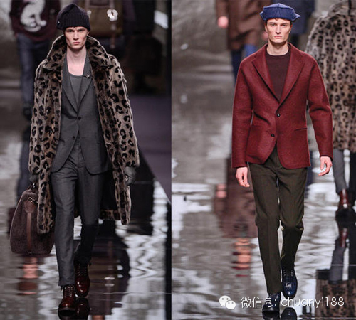 Louis Vuitton刻意放宽领口的线条,挥别冬装给人过份厚重的穿搭感受,改以率性轻盈的同色系T恤换搭,与外头的豹纹大衣、毛呢外套呈现质料的差异对比,成功蜕变出秋冬雅男的轻盈宣言。