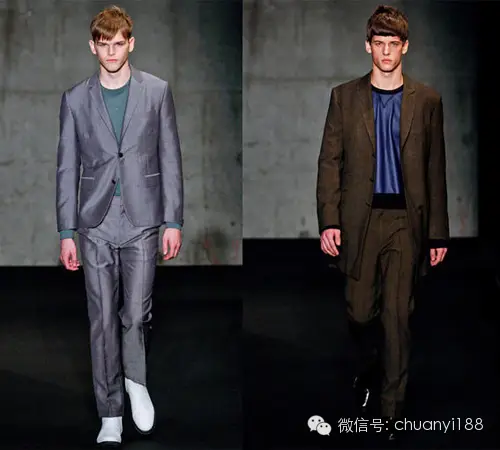 以往被归类为休闲随性的运动衫,在2013年 Rag & Bone 秋冬秀上,却一反常态地成为优雅绅士的代名词,西装内搭特意以运动衫版型处理,有效降低了西装给人拘谨的严肃感,搭配各式复古色调的用色辅佐,将男人点缀的更加温暖和善。