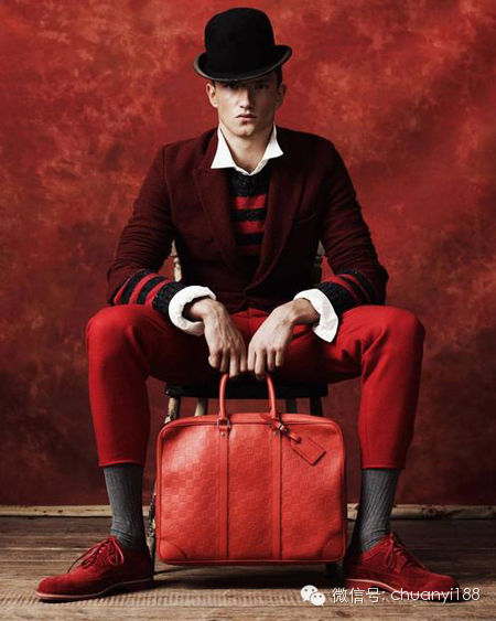 “红色”如何搭的抢眼有型呢?其实很简单,可运用渐层红色系(亮红、暗红色)来提升整体层次感,上半身用酒红色外套搭上红黑横条纹针织衣呈现,下半身加强色彩亮点,以鲜艳红色9分裤、箕皮材质的樱桃色系德比鞋作为点缀,表现热情如火的时尚型男!