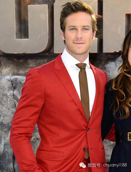 选用光滑质感的红西装与白色基底的衬衫,辅以大地色领带,梳起咖啡金色油头,露出深邃五官,大方地展现出这件红色西装所释放的热情、奔放魅力。