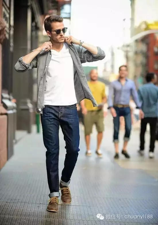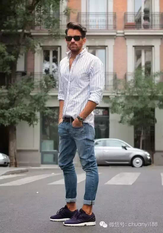 1、对于腿型相对较短的亚洲人,选择修身牛仔裤能在视觉上有效地提升大长腿的效果,让男人的魅力增值,而宽松和肥大的牛仔裤只会让你在矮矬穷的道路上越走越远。